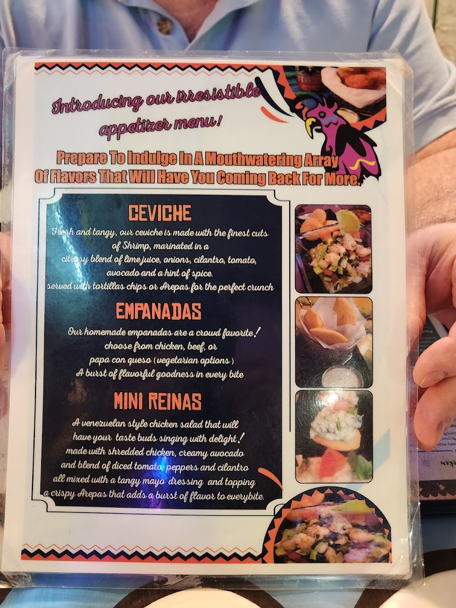 Our own style shrimp Ceviche. Serve with mini arepas ( hand made corn dough)